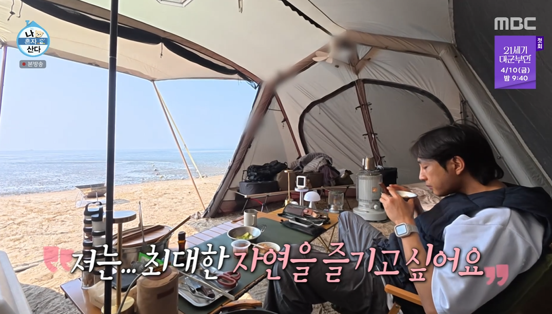 이날 배나라는 한 바닷가 해수욕장에서 캠핑하는 모습을 보여줬는데요.