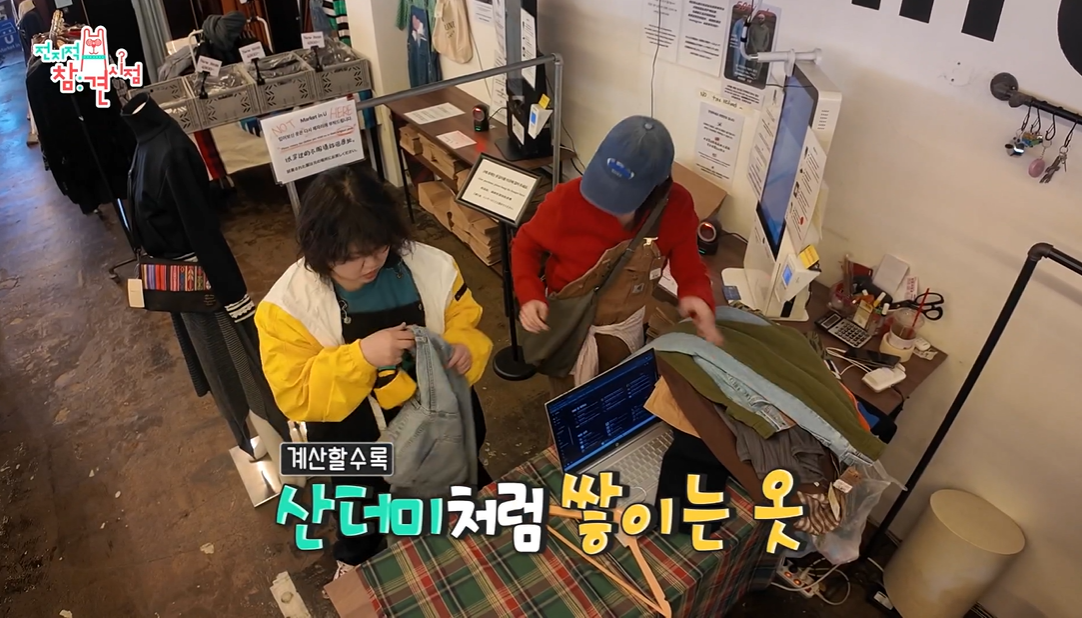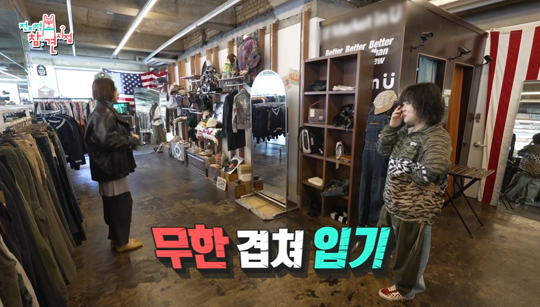 이날 둘은 성수에 위치한 한 빈티지숍 매장에 가서 옷 쇼핑을 하였는데요.