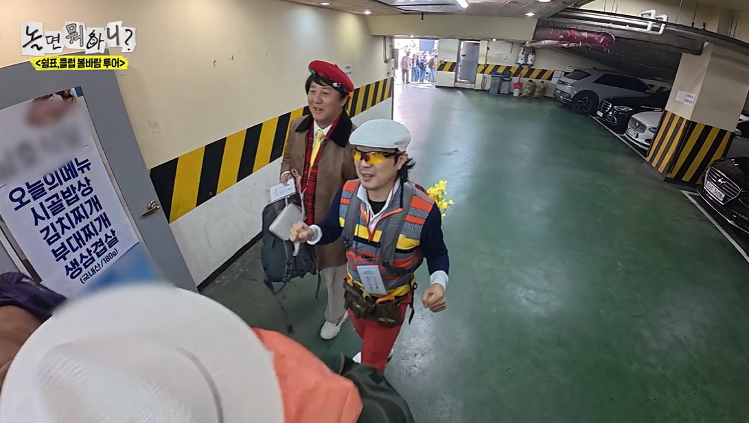 이날 유재석, 하하, 허경환, 주우재, 정준하, 변우석은 쉼표, 클럽 봄바람 투어 모임으로 첫 번째 코스로 옷을 사고 두 번째 코스로 식사를 하러 한 지하 주차장에 안에 위치한 식당으로 갔는데요.