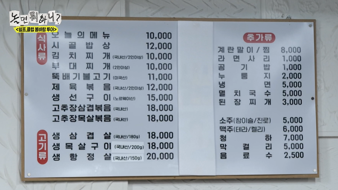 놀면 뭐하니 놀뭐 지하주차장 식당 부대찌개 고추장 목살 볶음 시골밥상 쉼표클럽 가게 어디 촬영지 장소 위치 정보