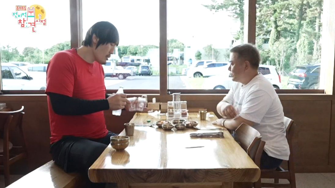 민오름 하산 후 단골 식당에 온 최홍만과 제주도 매니저