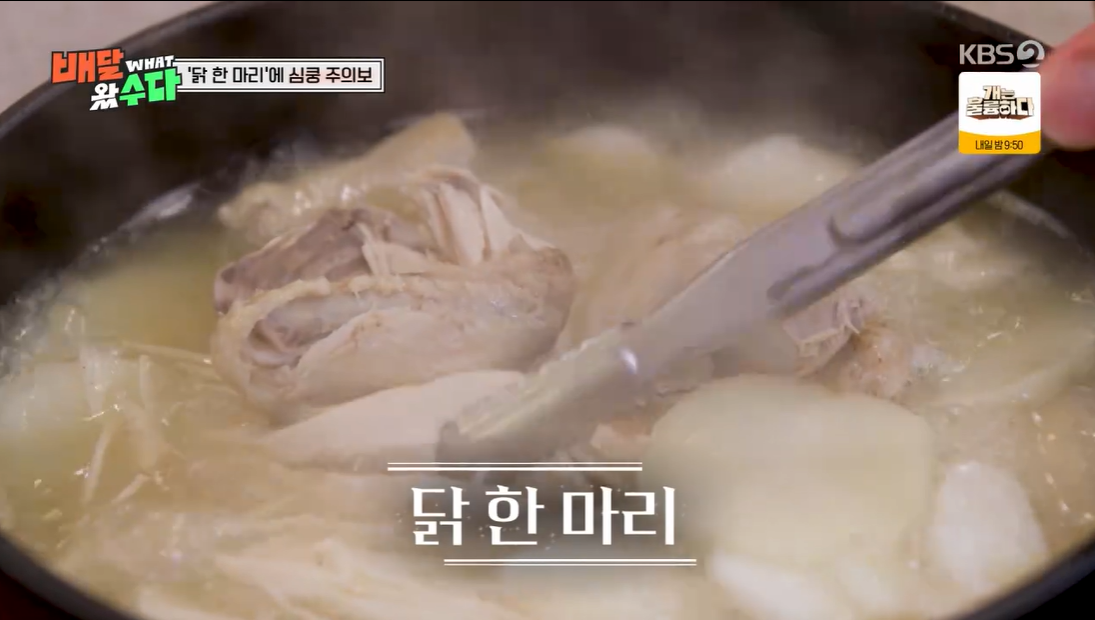 두 사람이 주문한 음식은 닭 한 마리와 감태주먹밥, 짜장 떡볶이였는데요