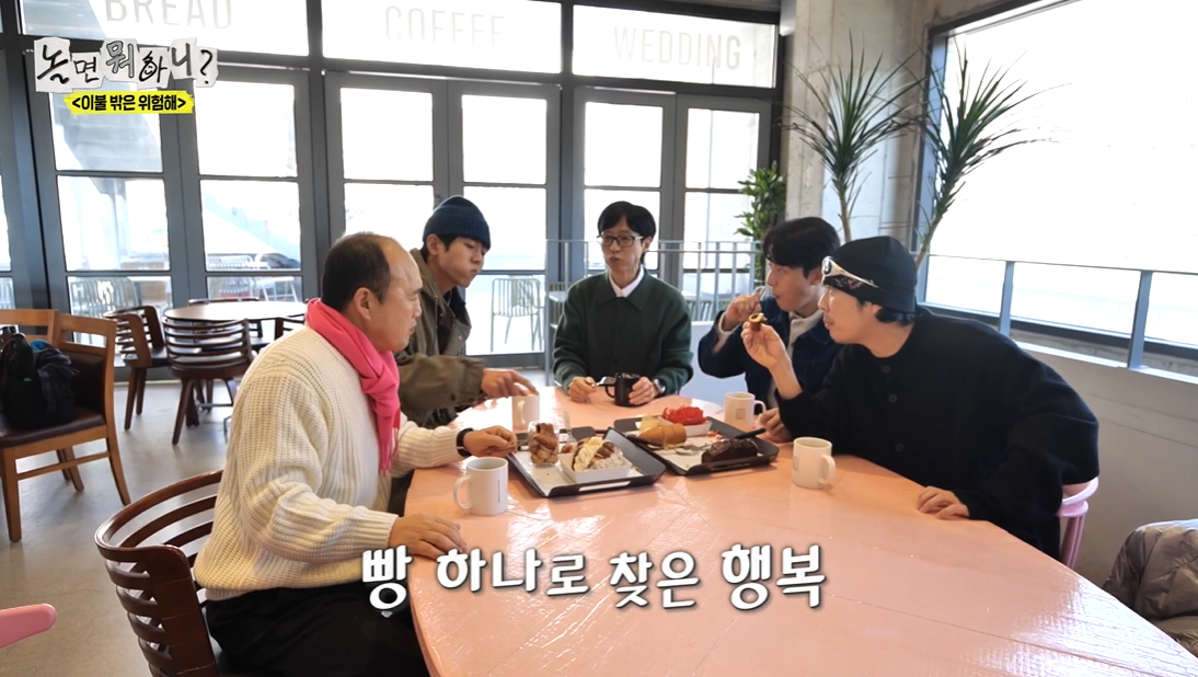 이날 놀면 뭐하니 멤버들은 통영 셰프와 함께 할 촬영 장소로 가기 전 김광규가 커피를 쏘고 싶다고 하여 한 베이커리 카페에 들러 빵과 커피를 먹었는데요.
