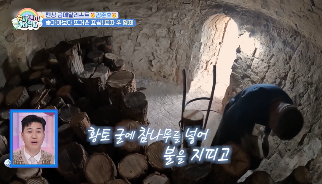 황토 굴에 참나무를 넣어 불을 지피고