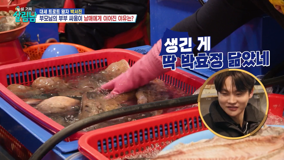 살림하는 남자들(살림남) 443회에서 박서진은 동생 효정과 문어를 사러 해산물 시장에 갔는데요.