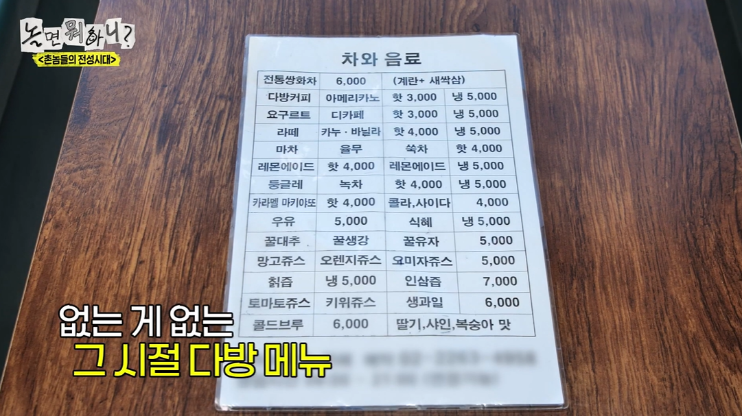 없는 게 없는 그 시절 다방 메뉴